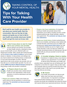 Don't wait until your symptoms are overwhelming. Talk about your concerns with your principal care provider, who can refer you to a mental health specialist if needed. If you don't know where to starting time, read the National Found of Mental Health (NIMH) Tips for Talking With Your Wellness Intendance Provider fact sail. Acquire more nigh how to get help or detect a provider on the NIMH'due south Help for Mental Illnesses webpage.